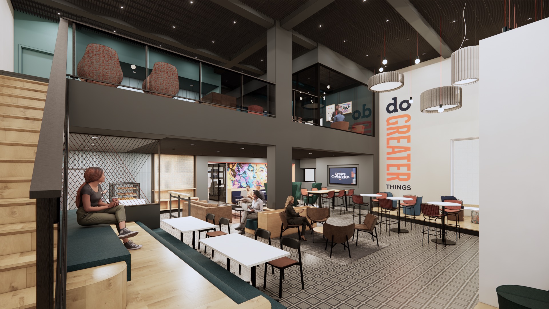 Inside, you’ll find studios for digital design, photography, videography, and screen printing, as well as co-working spaces, classrooms, a full coffee shop, and open areas designed for collaboration. Members of the community will be able to attend workshops, mentor students, host events, or simply grab a coffee and connect. It’s a space designed for creative collisions. A place where creativity meets opportunity, and where ideas move from possibility to mobility.